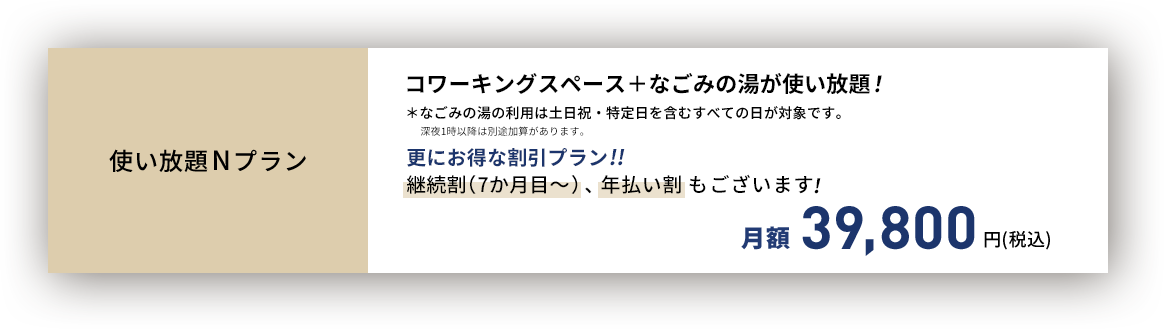 ドロップインもご利用できます。30分390円より30分ごとの課金制です。
